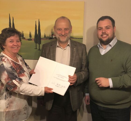 Auf seiner jüngsten Mitgliederversammlung konnte der SPD-Ortsverein Stein-Bockenheim Ernst Scharbach für 40 Jahre Mitgliedschaft in der SPD ehren. Vorsitzende Gabi Anlicker-Bäcker überreichte im Namen des Parteivorsitzenden Martin Schulz eine Urkunde und steckte dem Jubilar die silberne Ehrennadel ans Revers. Die Ortsvereinsvorsitzende bedankte sich für die jahrzehntelange Unterstützung des Ortvereins und der Gemeinde Stein-Bockenheim. Dies sei insbesondere vor dem zeitintensiven Beruf von Scharbach, der Vorsitzender des Hauptpersonalrates der Polizei und Vorsitzender der Gewerkschaft der Polizei Rheinland-Pfalz ist, nicht selbstverständlich.