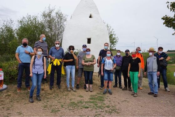 Nach einer Stärkung bei der Vereinigung der Naturfreunde Flonheim und Umgebung e.V. bewunderten die Wanderer die große landschaftliche Abwechslung sowie verschiedene Highlights wie z. B. den Trullo. Dort verköstigten die Vorsitzenden der Flonheimer SPD, Katharina Philipp und Jörg Thumann, alle Teilnehmer mit Weinen aus dem Ort.